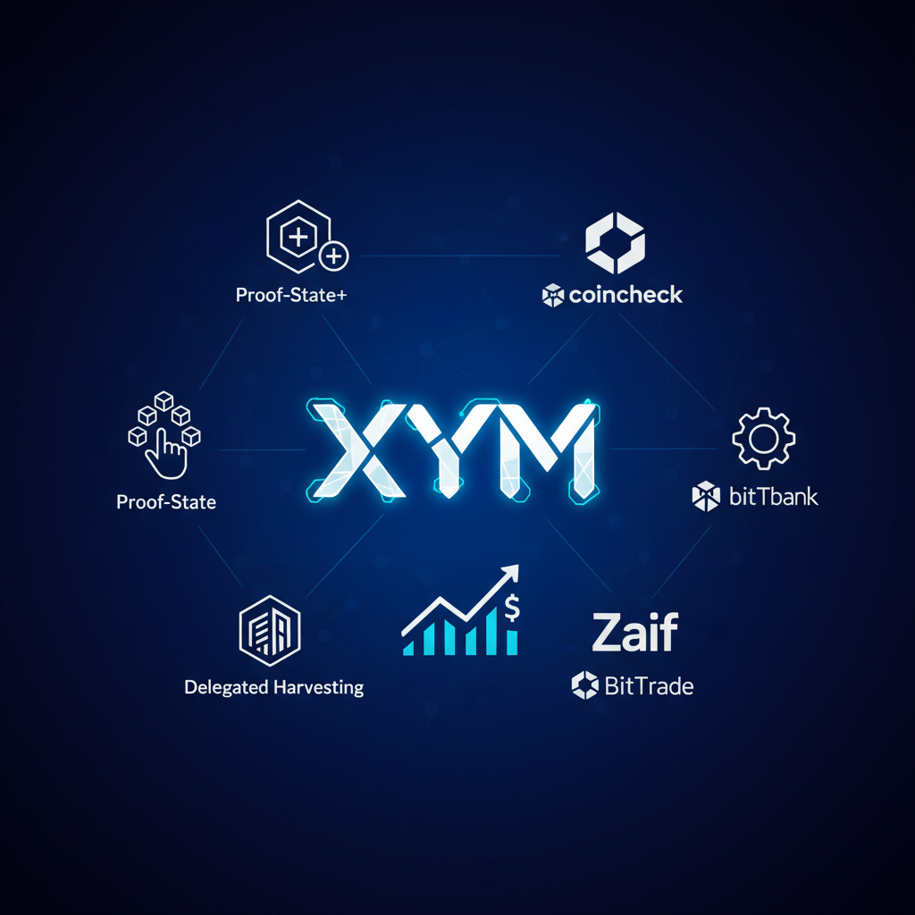シンボル(XYM)の今後を2026年4月時点で解説。NEM後継チェーンとしてのPoS+、デリゲート委任ハーベスト、エンタープライズ向け機能、Coincheck・bitbank・BitTrade・Zaifでの取扱、価格予想と将来性、買い方ステップまでまとめます。